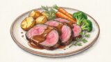 火を止め、肉をフライパンに乗せたまま3分ほど休ませます。すぐに切ると肉汁が流れ出てしまうため、少し置くことでジューシーに仕上がります。