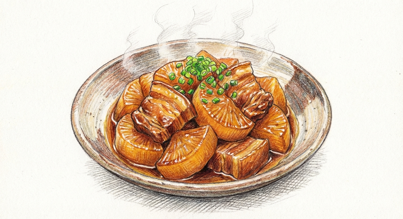 大根をレンジで加熱した時点で、竹串がスッと通るくらい柔らかくしておくのが最大のコツです。この下準備のおかげで、煮込み時間が短くても味がしっかり染み込みます。大根を厚く切りすぎると中まで味が染み込みにくくなるので注意してください。また、最後の煮詰め作業では焦げ付きやすいので、目を離さずフライパンを揺すり続けてください。
