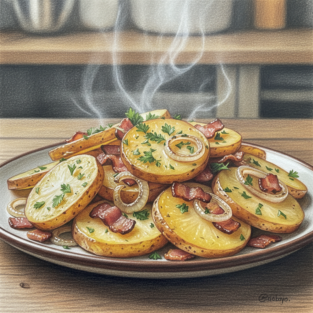 こんにちは。今回はじゃがいも料理の定番、ジャーマンポテトをご紹介します。じゃがいもを炒めるだけで火を通そうとすると、外は焦げているのに中は硬いといった失敗が起きがちですよね。でも安心してください。電子レンジを使うことで、誰でも簡単にホクホクに仕上がりますよ。コンソメを使うことで味がピタリと決まるので、料理初心者の方にもおすすめです。