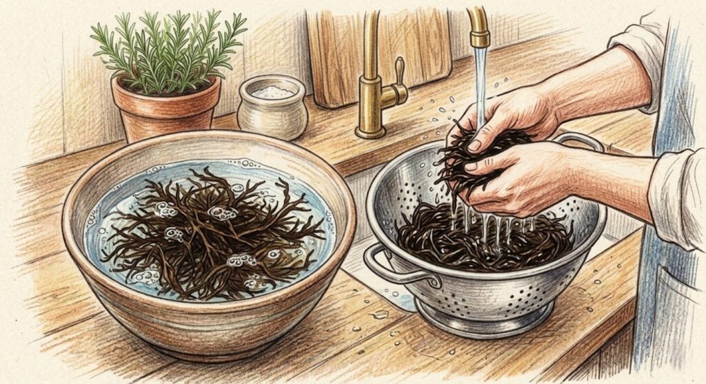 1. ひじきを戻して洗う