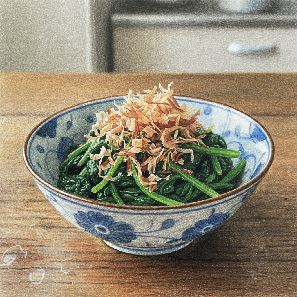 こんにちは。家庭料理アドバイザーです。今回はほうれん草のお浸しの正解をご紹介します。味が薄くなってしまったり水っぽくなったりするのが心配ですよね。でも大丈夫です。めんつゆを使うので誰でも味がバッチリ決まります。失敗の原因である水っぽさを防ぐコツと、お店のような深みを出す隠し味をプラスした自信作です。一緒に作っていきましょう。