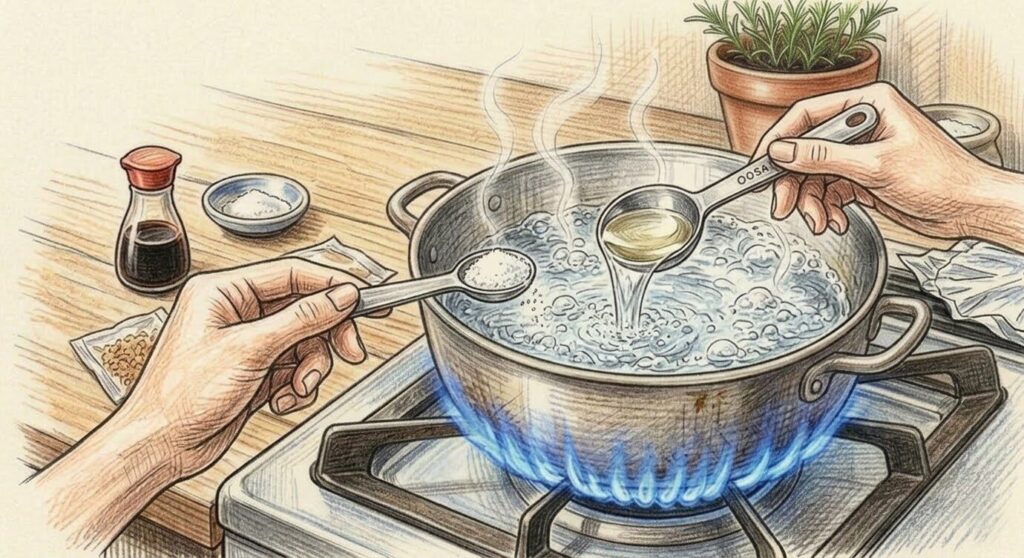 • 塩: 小さじ1 (殻をむきやすくする重要アイテムです)